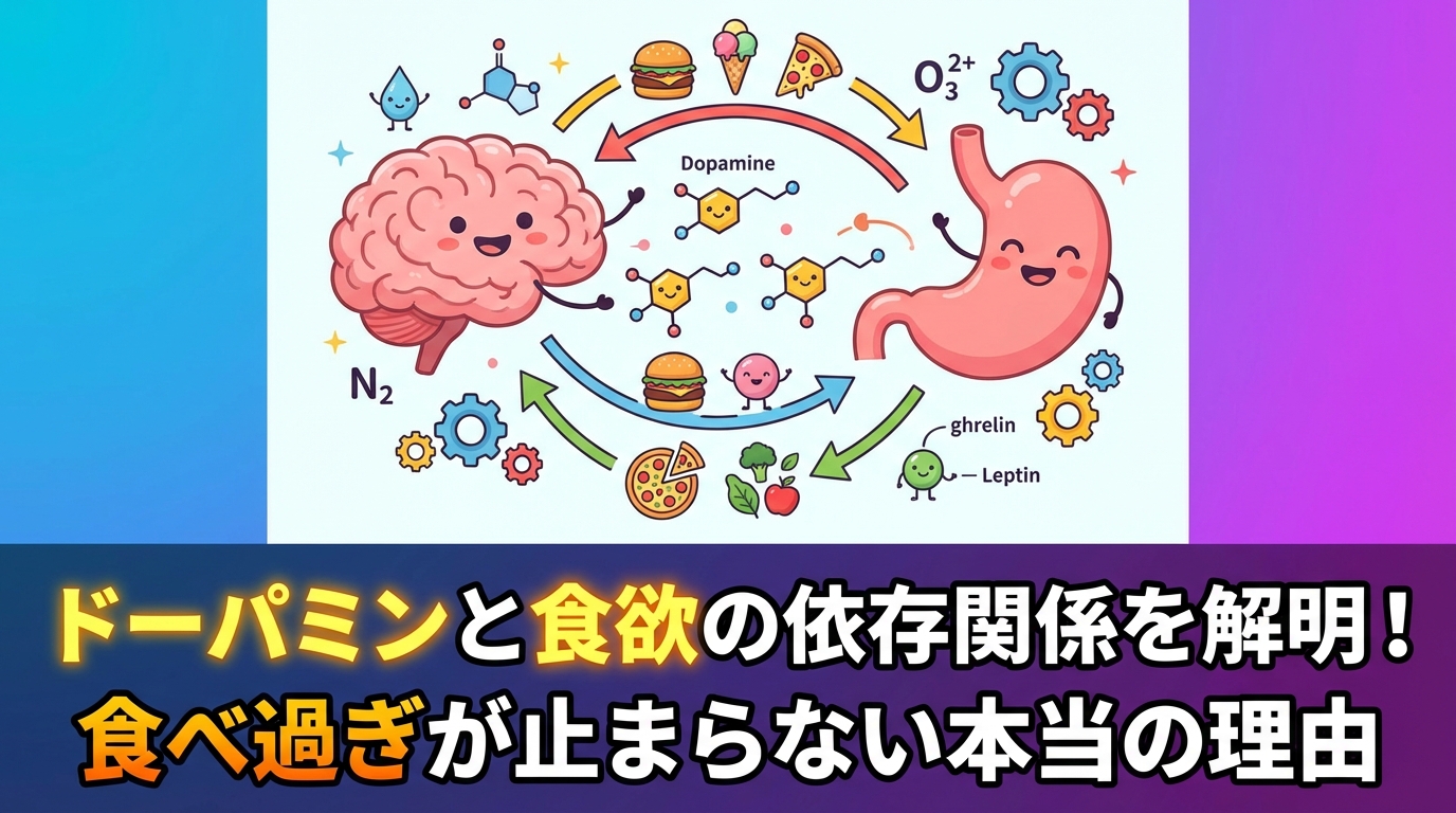 この記事では、ドーパミンと食欲の依存メカニズムを科学的に解説し、あなたが食べ過ぎから解放されるための具体的な方法をお伝えします。「なぜ食べたい気持ちが止まらないのか?」その答えが、きっと見つかるはずです。