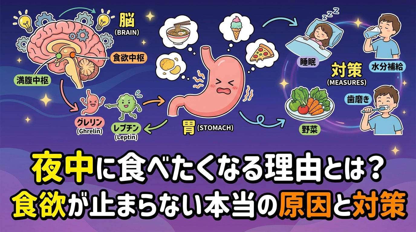 夜中に食べたくなるのは、あなたの意志が弱いからではありません。血糖値の乱れ、ストレス、睡眠不足、そして日中の我慢…これらが複雑に絡み合って、「食べたい」という衝動を生み出しているんです。